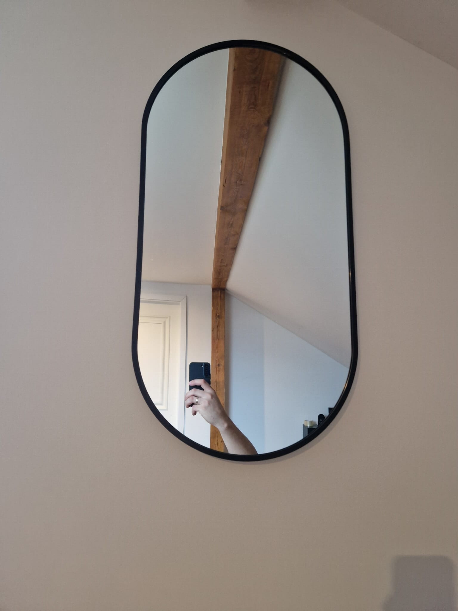Czarna aluminiowa rama o grubości 3 cm nadaje lustru subtelnej elegancji i głębi. Jej matowe wykończenie doskonale komponuje się z nowoczesnymi aranżacjami, loftami oraz minimalistycznymi przestrzeniami. Owalny kształt dodaje wnętrzu lekkości i harmonii, a jednocześnie sprawia, że lustro staje się wyrafinowanym elementem dekoracyjnym.